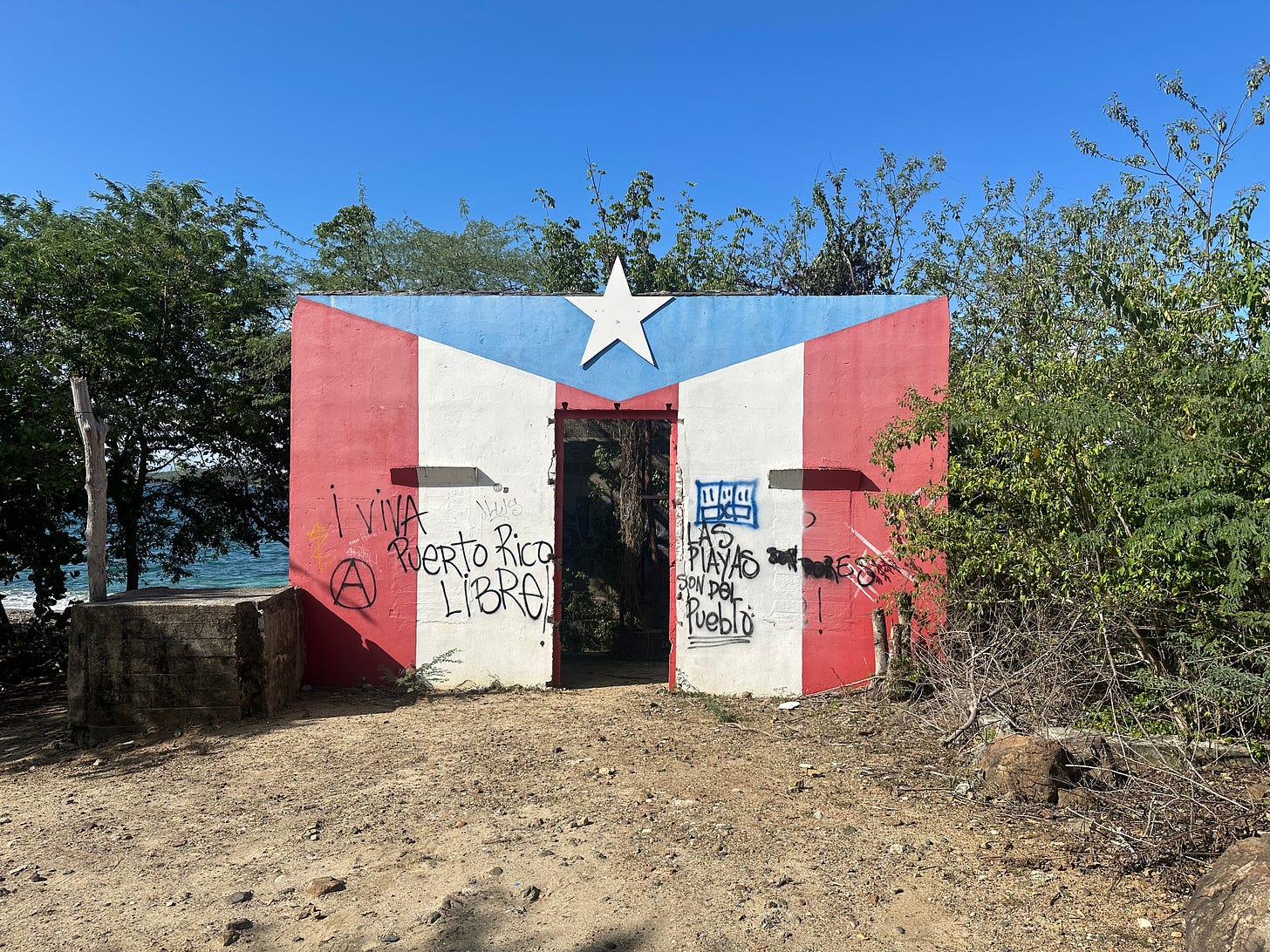 Son las once de la mañana del domingo 2 de noviembre de 2025 en la Comunidad de La Puntilla, un foco de lucha nacionalista en el extremo sur del Viejo San Juan, y Puerto Rico no es libre desde que Cristóbal Colón desembarcó en la costa occidental de la isla Borikén en 1493. El enemigo es el vecino: a cien metros patrulla una estación de la Guardia Costera de los Estados Unidos. Rodeados por la flota militar yanqui y por un estacionamiento colosal que se construyó sobre la expropiación de un barrio histórico sobreviven tres complejos de departamentos pintados de un celeste eléctrico, un verde aguado y un amarillo alertador.