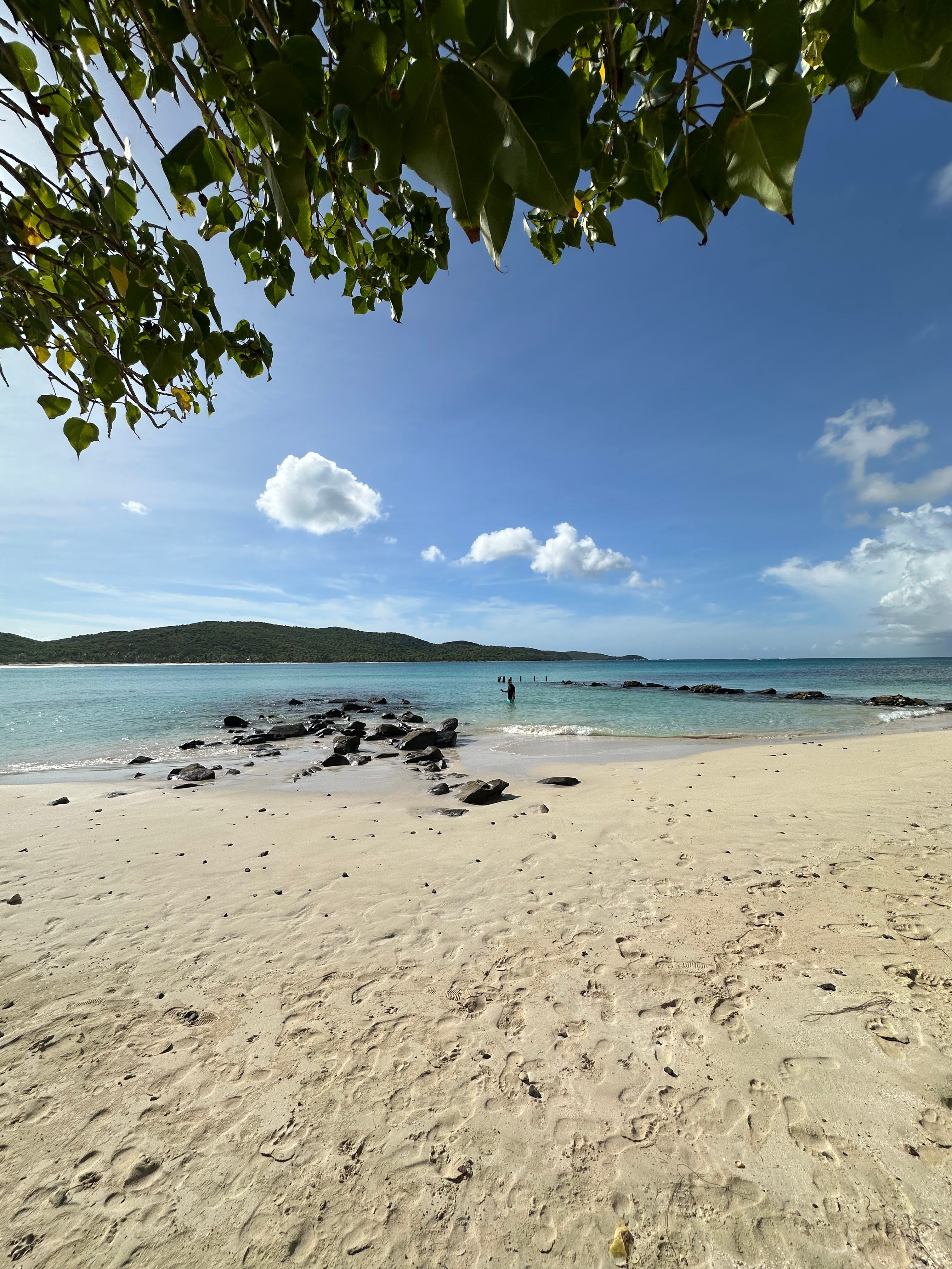 Pero ahora, en esta postal inmejorable que es Flamenco Beach, todo eso parece un problema de otros. No hay rastros del huracán que está devorándose a Cuba y Jamaica: por un momento nadie se acuerda que también puede haber tragedia en la belleza. En el rincón más al este de la bahía está El Muellecito, un secreto para los casuales en el que se forma una pileta sin oleaje al lado de los cimientos de lo que supo ser una estructura de atraque para los barcos estadounidenses.